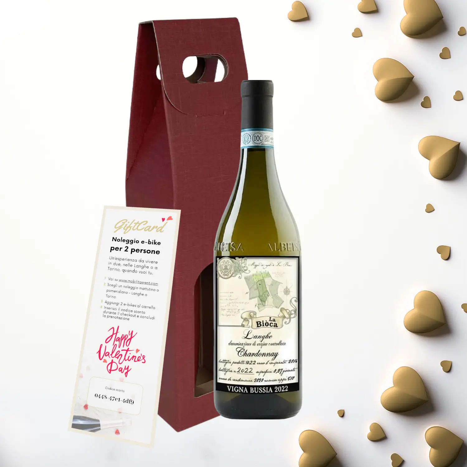 Una giftbox elegante con una bottiglia di Langhe DOC Chardonnay e un giro in e-bike per due. Un regalo raffinato, perfetto per chi ama scoprire il territorio tra colline e panorami indimenticabili. Spedizione gratuita e voucher valido 24 mesi.