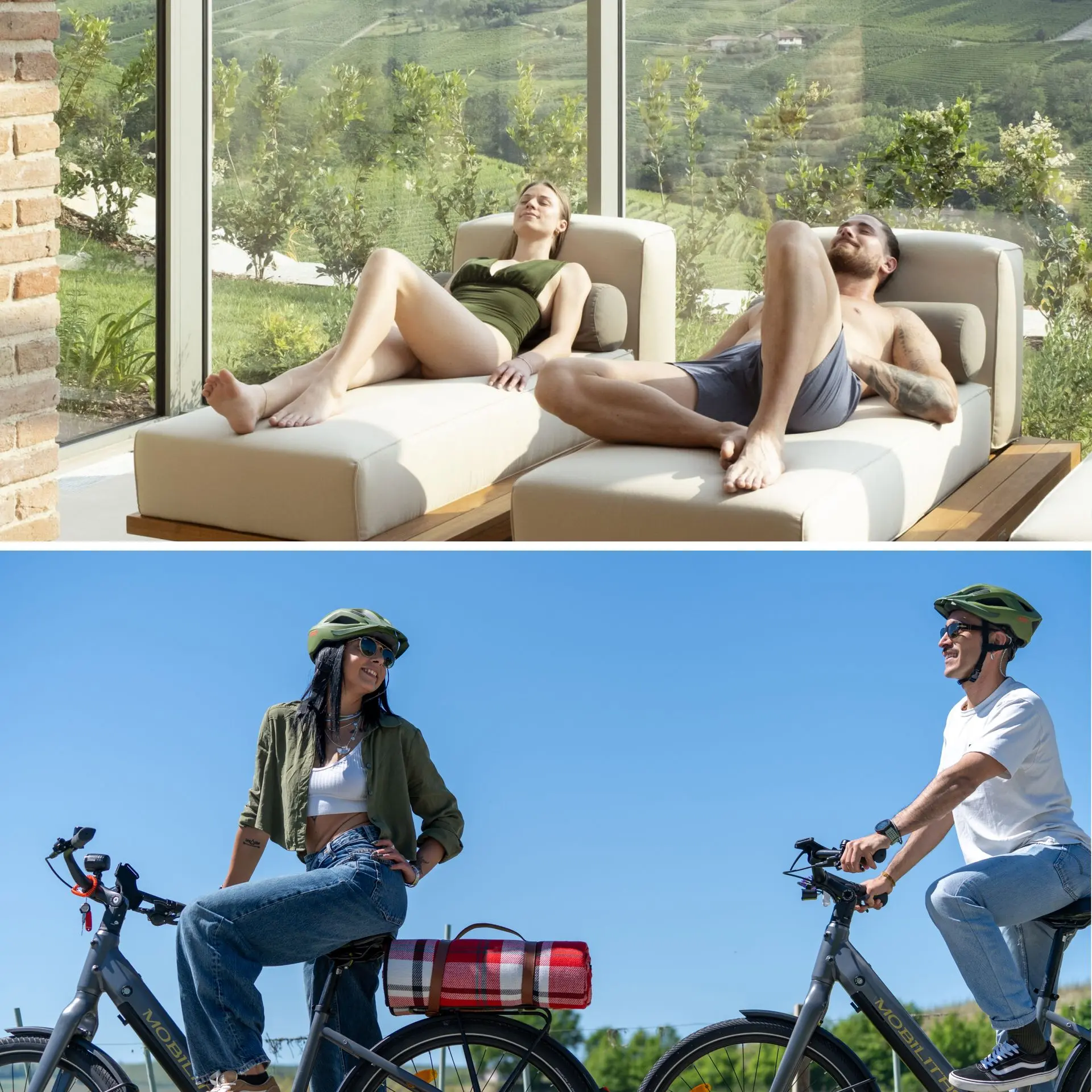 Pedalate dolci tra le colline, seguite da momenti di puro relax: SPA panoramiche, yoga rigenerante, vino e cibo per corpo e spirito.