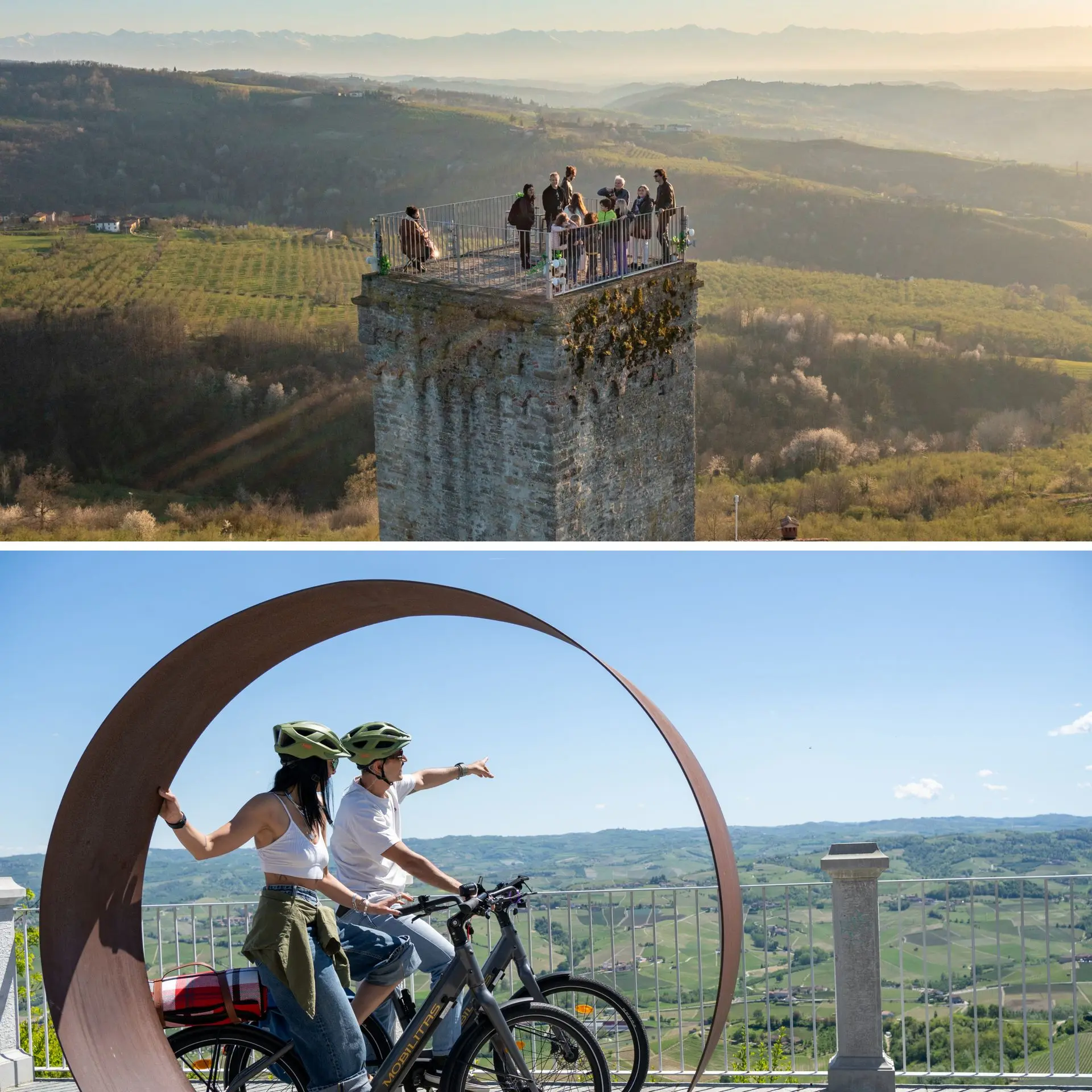 Pedala tra vigneti e borghi storici e goditi un pranzo panoramico sulla torre medievale di Albaretto
